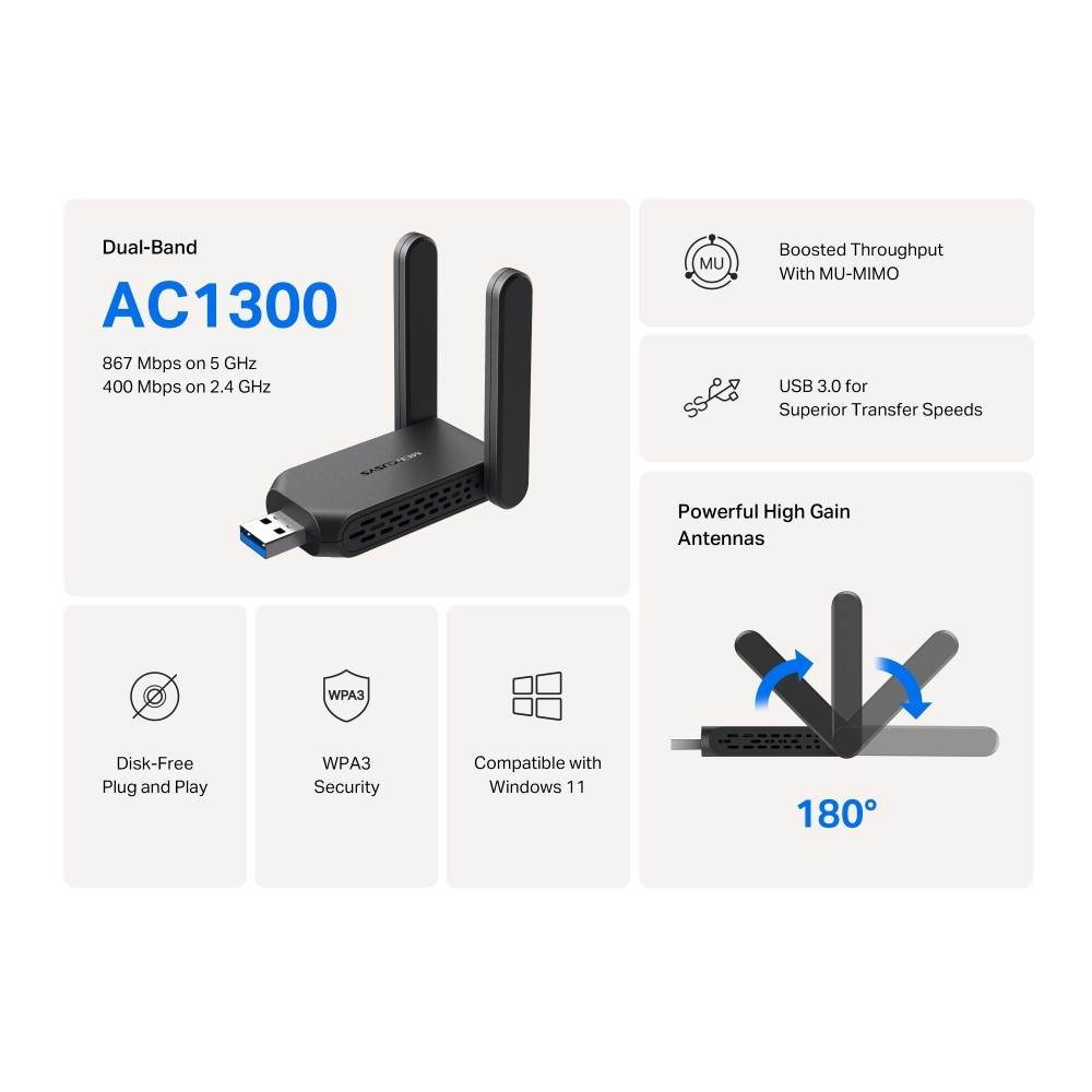 Adaptador Red Mercusys Ma32h Usb3.0 Wifi.Ac/867mbps 2antenas Doble Banda | Quonty.com | MA32H