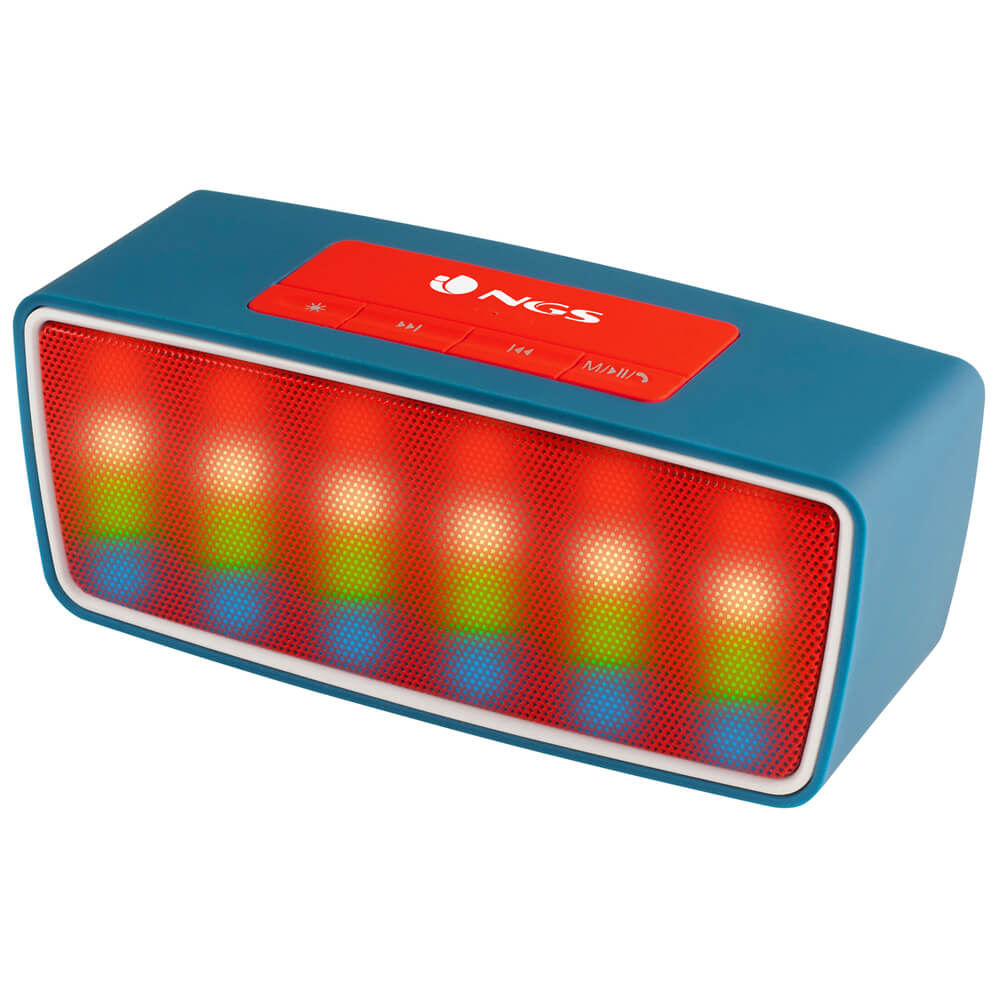 NGS Roller Glow es un altavoz bluetooth inalámbrico portátil y recargable para smartphones y tabletas. Destaca por su gran potencia y calidad de sonido de 3W, así como por su juego de luces de colores led.