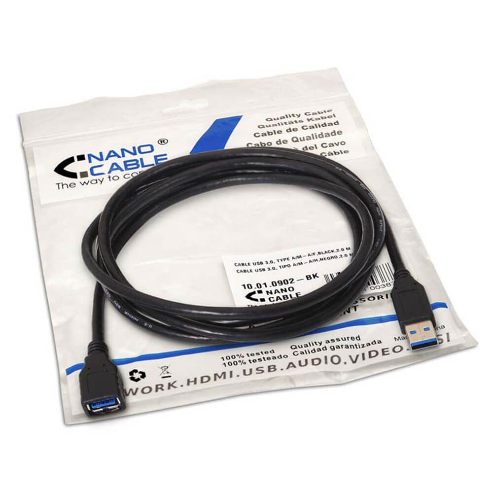 Cable Usb Nano Cable Usb3.0 A/M - A/H 3.0m Negro | Quonty.com | 10.01.0903-BK