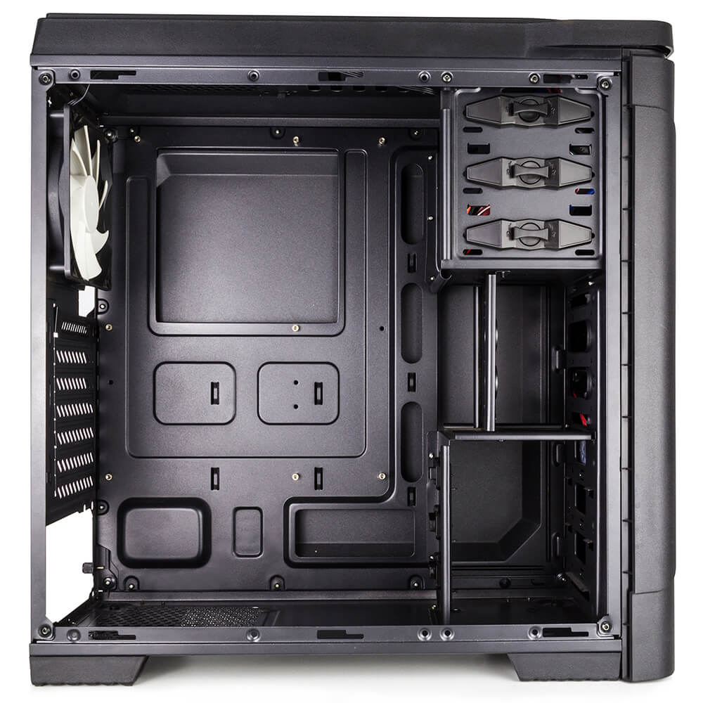 Humer VX ofrece grandes posibilidades de ventilación gracias a la capacidad para instalar hasta 7 ventiladores. Tiene la característica de poder instalar dos ventiladores de 120mm en la parte superior de la caja y un sistema para ordenar cables, obteniendo así más opciones de refrigeración de tu equipo.