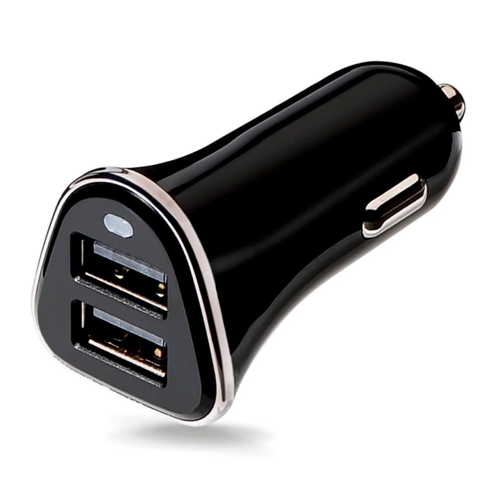 Cargador de coche con dos puertos de USB. Diseño muy elegante, moderno y práctico.