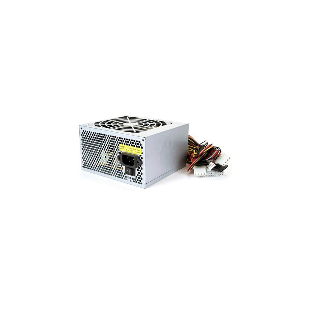 Fuente de alimentación ATX 500W con ventilador de 12 cm silencioso. Incluye protección de seguridad contra sobre tensión, caídas de tensión, sobre intensidad y cortocircuitos.