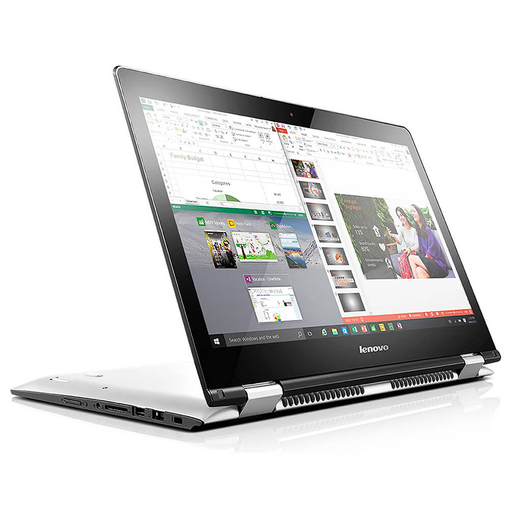 Un PC cuando lo necesite, un tablet cuando lo desee, etc. Cambie fácilmente entre cuatro modos: portátil, stand, tienda y tablet. El secreto: El diseño exclusivo y la pantalla táctil del Yoga 500. Permite una rotación de la pantalla 360º, para que pueda seleccionar el modo según la tarea que se disponga a realizar.
