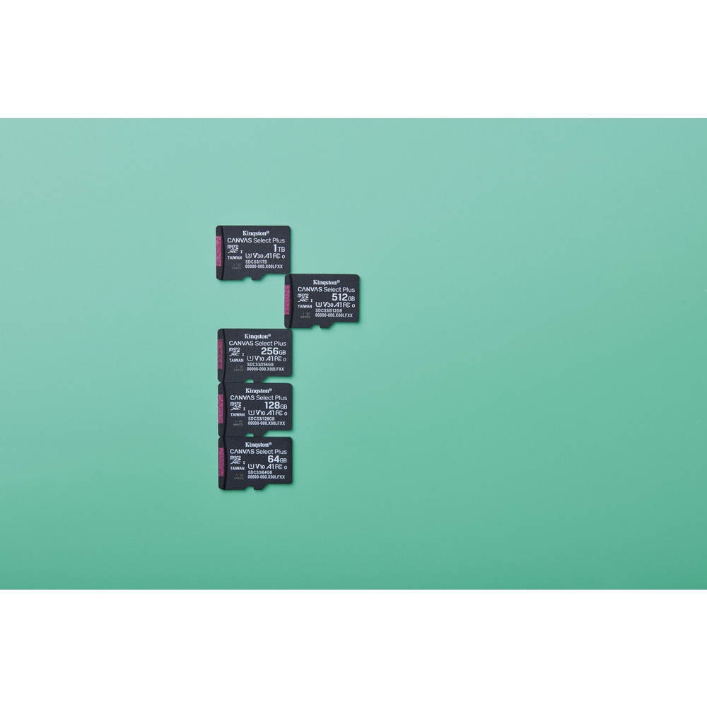 Las tarjetas microSD Canvas Select Plus de Kingston son compatibles con dispositivos Android y han sido diseñadas para un rendimiento mejorado de nivel A1. Ofrece una velocidad confiable y una gran capacidad para cargar más rápido las aplicaciones, así como para capturar imágenes y vídeos de hasta 1 TB** de capacidad. La tarjeta microSD Canvas Select Plus, potente en cuanto a rendimiento, velocidad y durabilidad, está diseñada de forma que puedas confiar en ella, por lo que podrás llevarla a cualquier parte con la seguridad de que tus fotos, tus vídeos e imágenes estarán en todo momento protegidos. Disponibles con garantía de por vida.