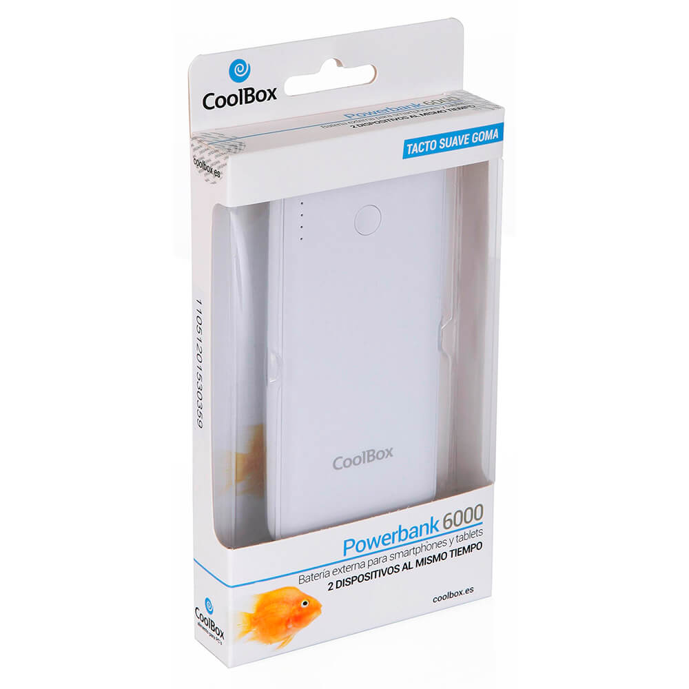 La Powebank Coolbox 6000 es compatible con: smartphones, tablets, reproductores MP3 y MP4, manos libres, altavoces Bluetooth y en general, con dispositivos con alimentación de características iguales a las de la salida del PowerBank. Elige entre los dos colores disponibles: azul o blanco.