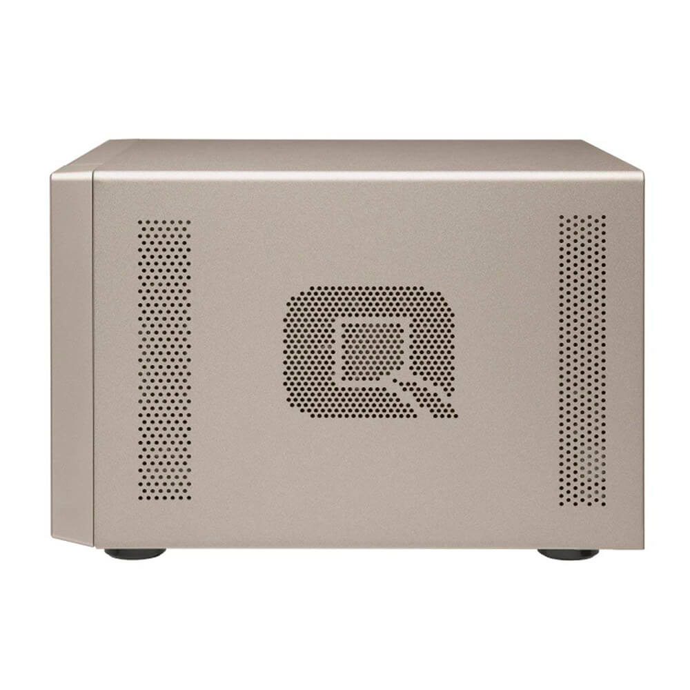 El TVS-473e cuenta con una APU R-Series de alta gama de AMD que incorpora una CPU excepcional con rendimiento de gráficos AMD Radeon R7, y ofrece una solución NAS de alto rendimiento y de bajo consumo. Construido con un vanguardista diseño metálico y rematado con un elegante acabado dorado, el competente TVS-473e ofrece capacidad de expansión PCIe, el exclusivo puerto USB QuickAccess, salida HDMI 4K@30Hz y aceleración de descodificación y de codificación de video 4K H.264 para una óptima experiencia audiovisual.
