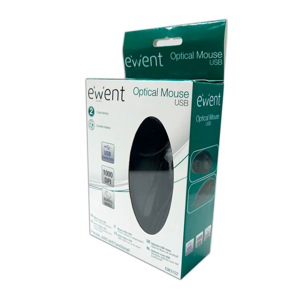 EW3152 es un ratón óptico con 3 botones incluido el scroll wheel y una navegación óptica de 1000dpi. Es 100% plug-and-play, así que no requiere la instalación de ningún software o driver de instalación. Simplemente conéctelo al puerto. Gracias al sensor óptico de 1000dpi usted puede trabajar sobre la mayoría de las superficies planas.