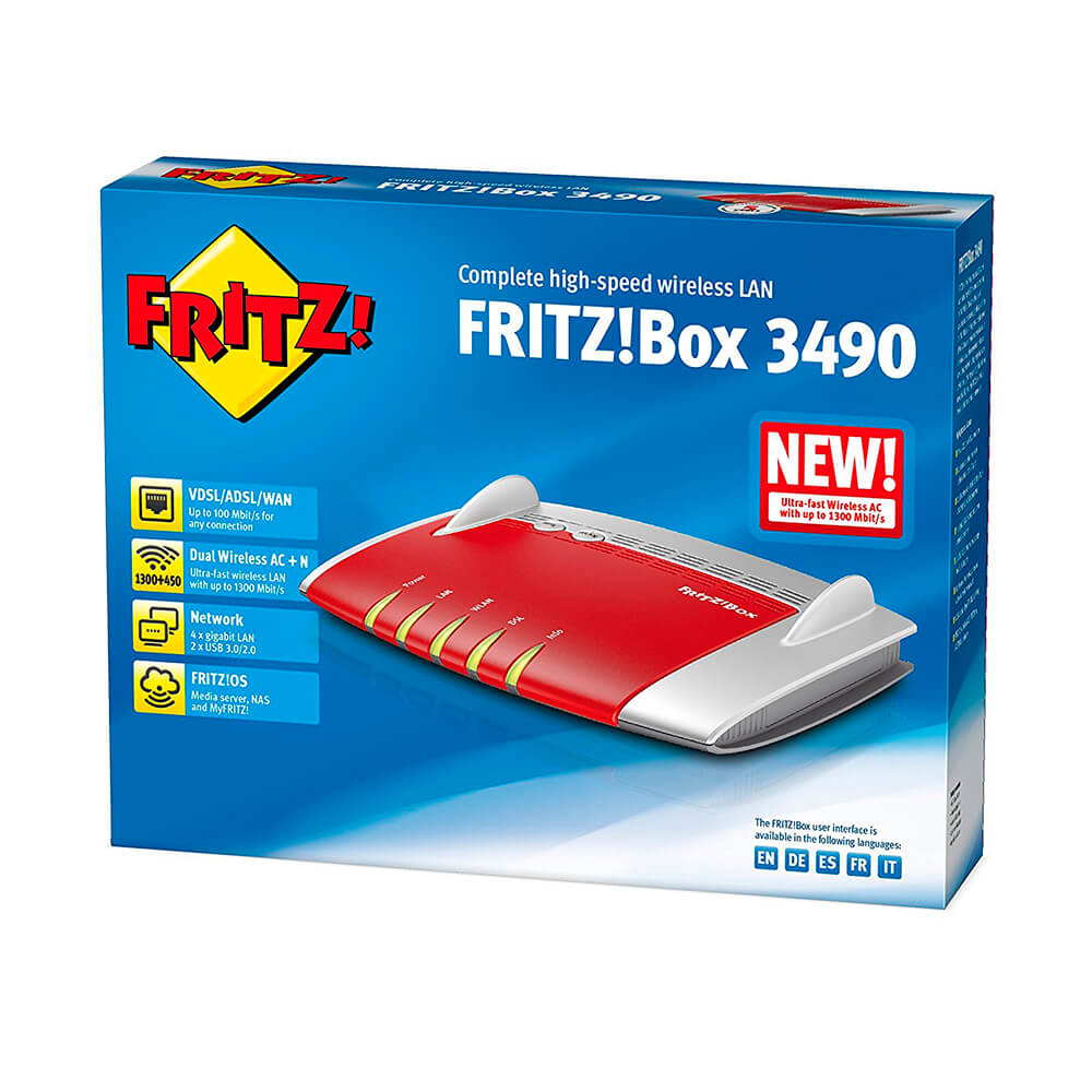 En nuestra sección de Redes encontrarás las mejores ofertas en Modems/Routers y los mejores precios en ROUTER WIFI FRITZ! BOX 3490 AC 1750, 1300 + 450 MBIT/S. Recíbelo en tu casa y con un coste de 0.00€ en gastos de envío si haces tú compra online hoy mismo.