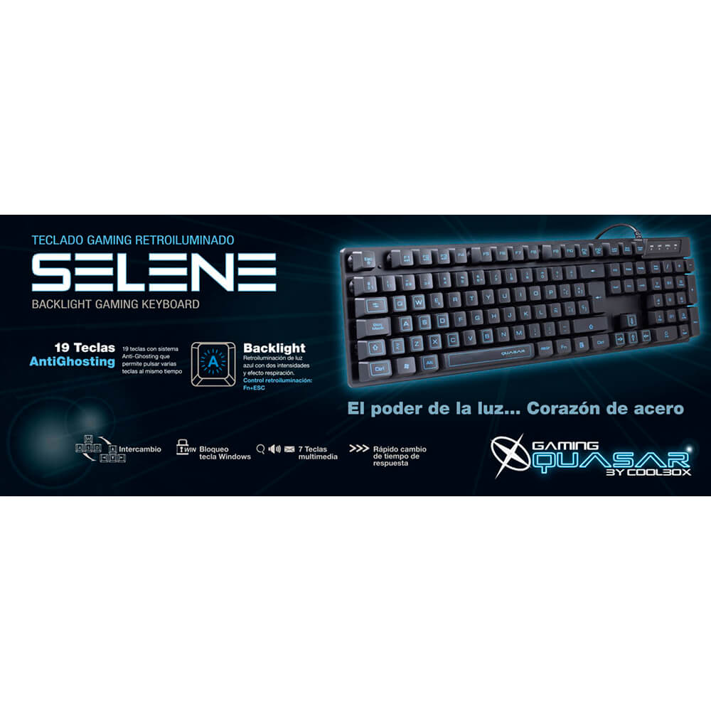 Teclado Coolbox Quasar Selene Gaming Usb Retroiluminado Azul | Quonty.com | QUA-TL014