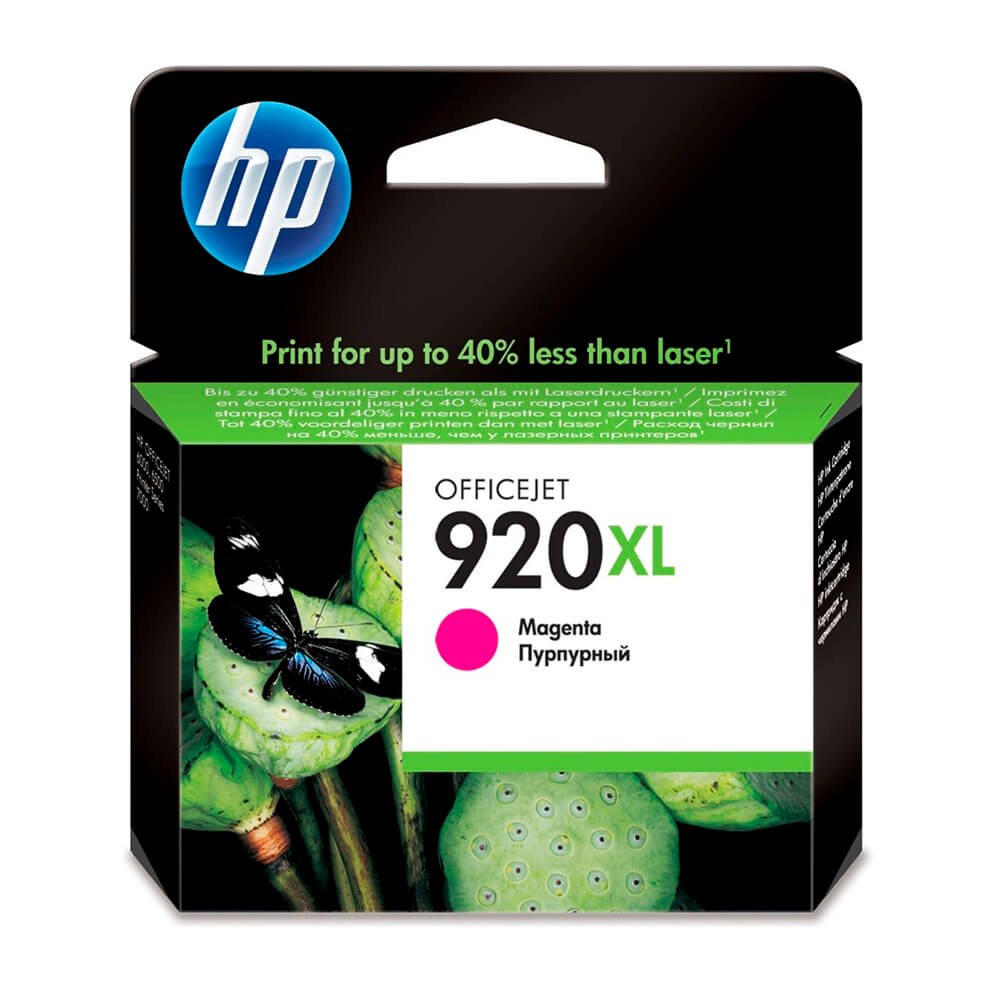 Los cartuchos de tinta magenta HP 920XL imprimen documentos profesionales a color con un coste inferior al láser, con tintas HP Officejet. Las tintas HP Officejet originales han sido formuladas para producir documentos de secado rápido, especialmente en papeles con el logotipo ColorLok.Imprima documentos profesionales en color por hasta un 40% menos por página que con láser, con tintas HP Officejet1. Los cartuchos de tinta individuales le ayudarán a imprimir de forma económica.